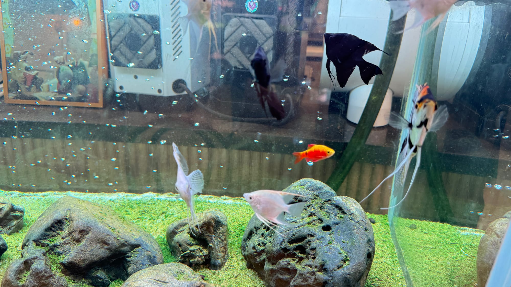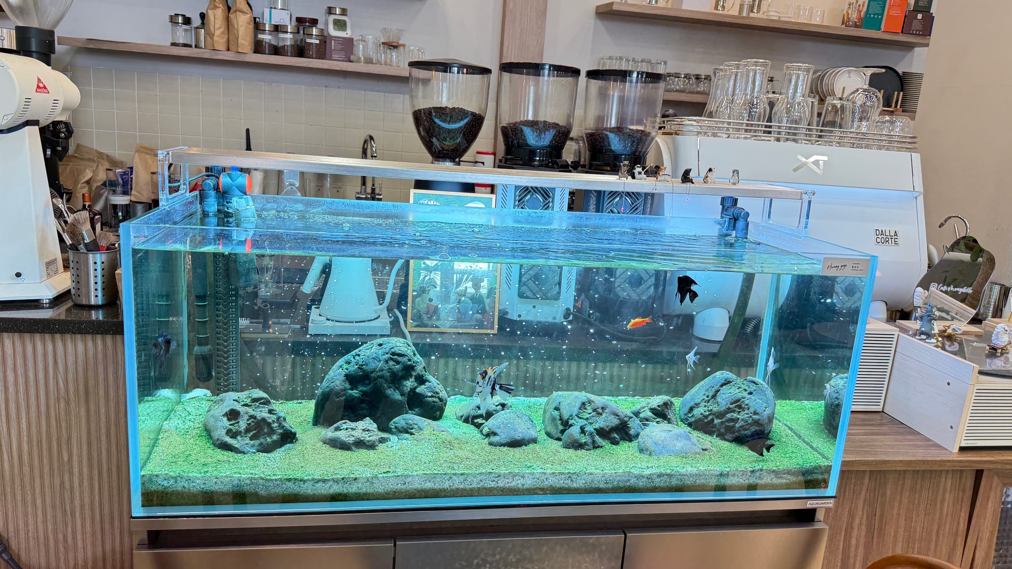 By Yun Young Hur in 일상 — 10 9월 2025 보정동 까페거리 어느 까페에서 까페가 따뜻한 느낌이 든다.어항 속 금붕어(?) 열대어들이 한가로이 돌아다니는 한가로운 어느 오후